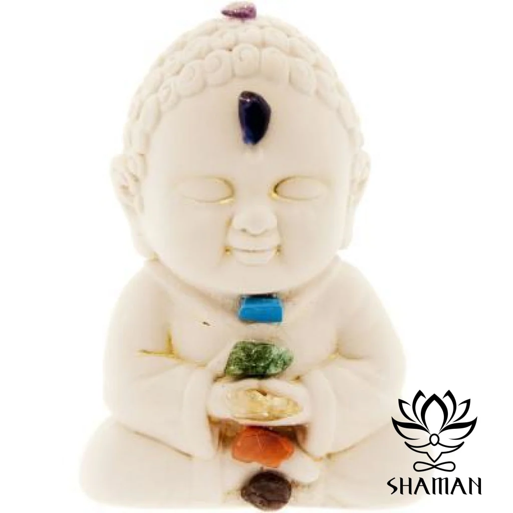 Notre adorable Bouddha en prière est représenté assis dans la position de méditation traditionnelle. Il a été orné de sept pierres taillées, chacune représentant l’un des chakras. Cet article a été fabriqué à partir de gypse naturel qui ne contient aucun produit chimique nocif. Fabriqué au Canada.