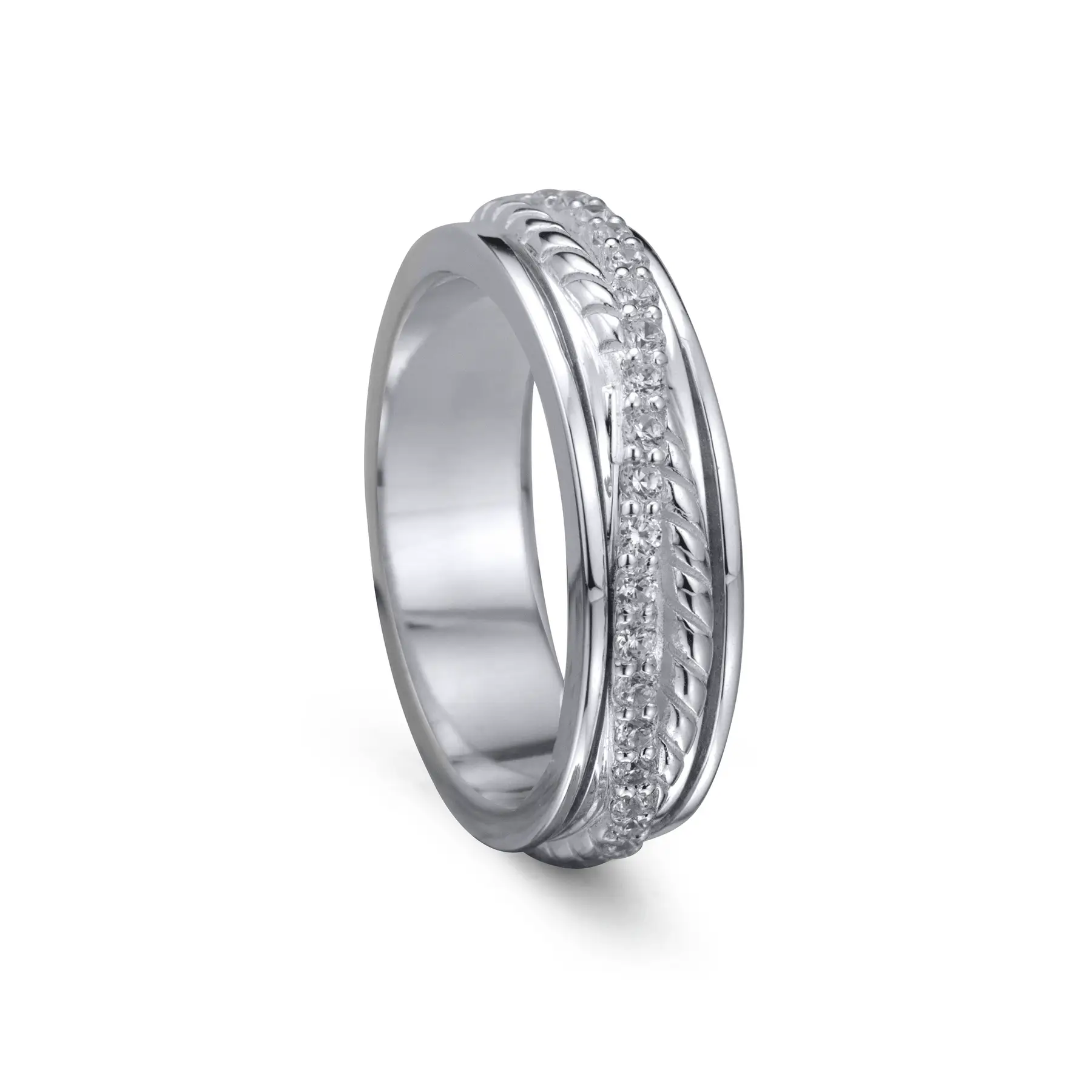 Bague de méditation en argent sterling avec un magnifique anneau rotatif ovale et marquise complexe orné de zircones cubiques transparentes. Combinez-les comme vous le souhaitez ; ces bagues de méditation polyvalentes et amusantes se portent de multiples façons !
