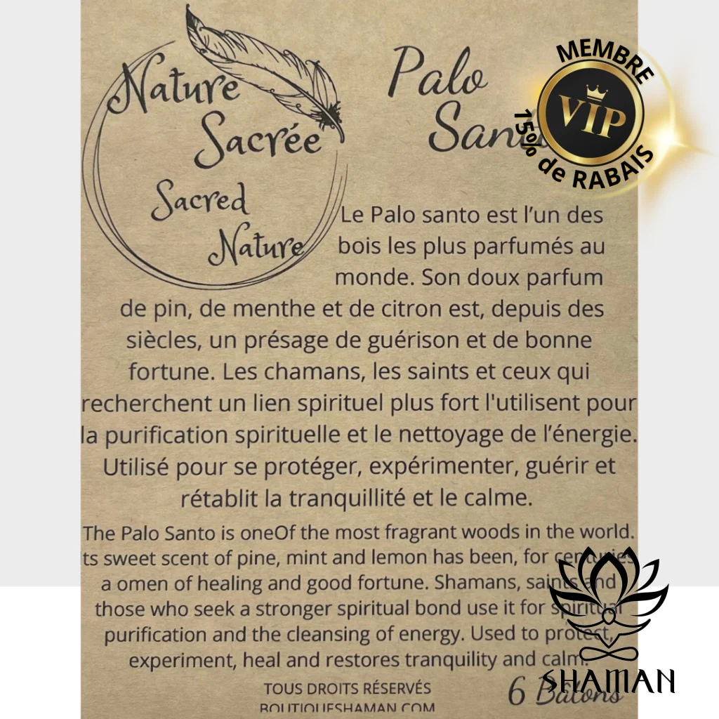 Le Palo santo est l’un des bois les plus parfumés au monde. Son doux parfum de pin, de menthe et de citron est, depuis des siècles, un présage de guérison et de bonne fortune. Les chamans, les saints et ceux qui recherchent un lien spirituel plus fort avec le monde utilisent le palo santo pour protéger, expérimenter et guérir.